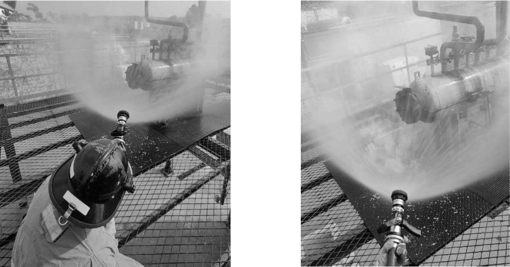 - Proteção e Resfriamento (Jato Neblina): Cria uma cortina de micropartículas de água que "encapsula" o calor, protegendo o brigadista e resfriando gases quentes para evitar o fenômeno do Flashover.