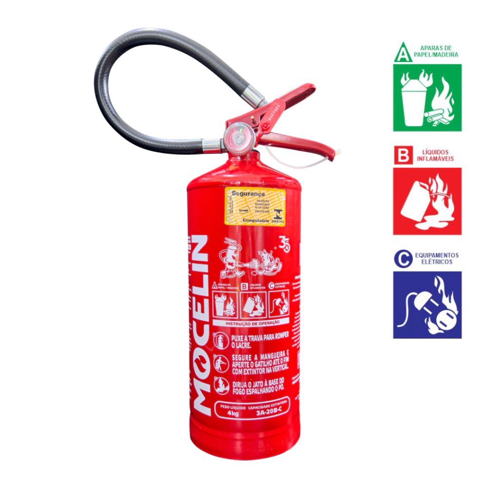Extintor de Incêndio PQS ABC 4kg - Mocelin | Proteção Versátil 3A-20B:C | Validade da Carga: 1 ano