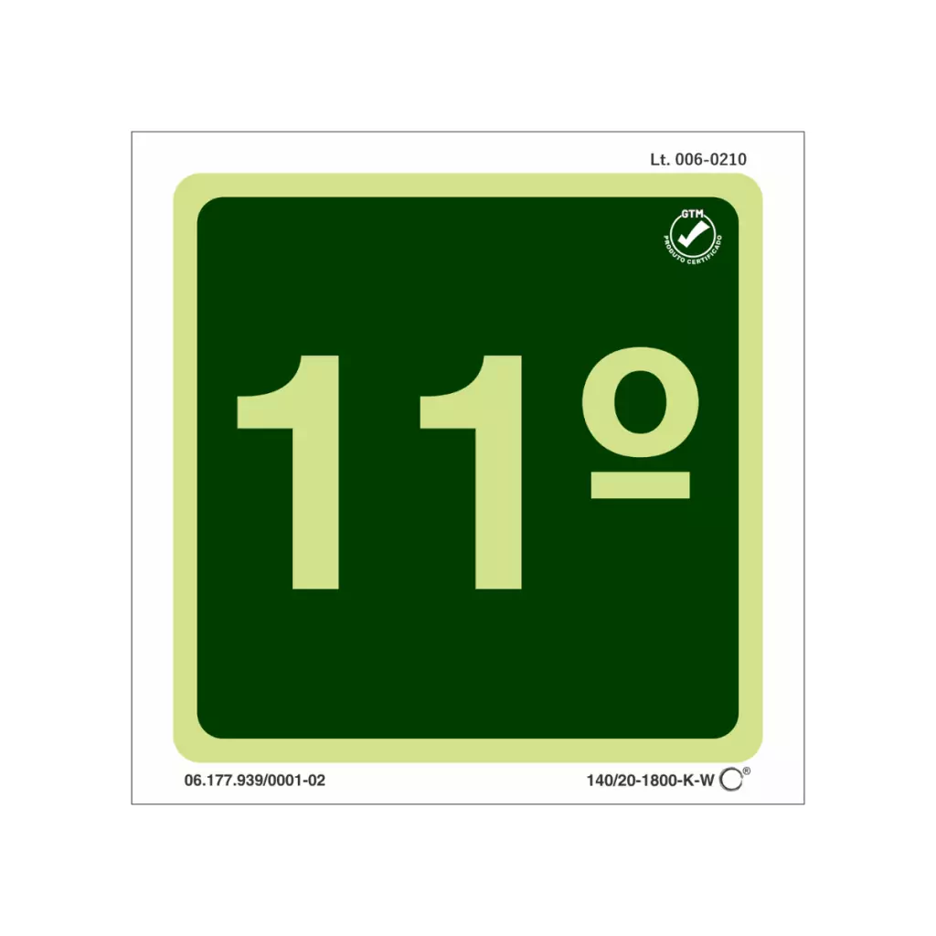 Placa de Sinalização de Emergência Fotoluminescente 11º Andar - 14 x 14 cm