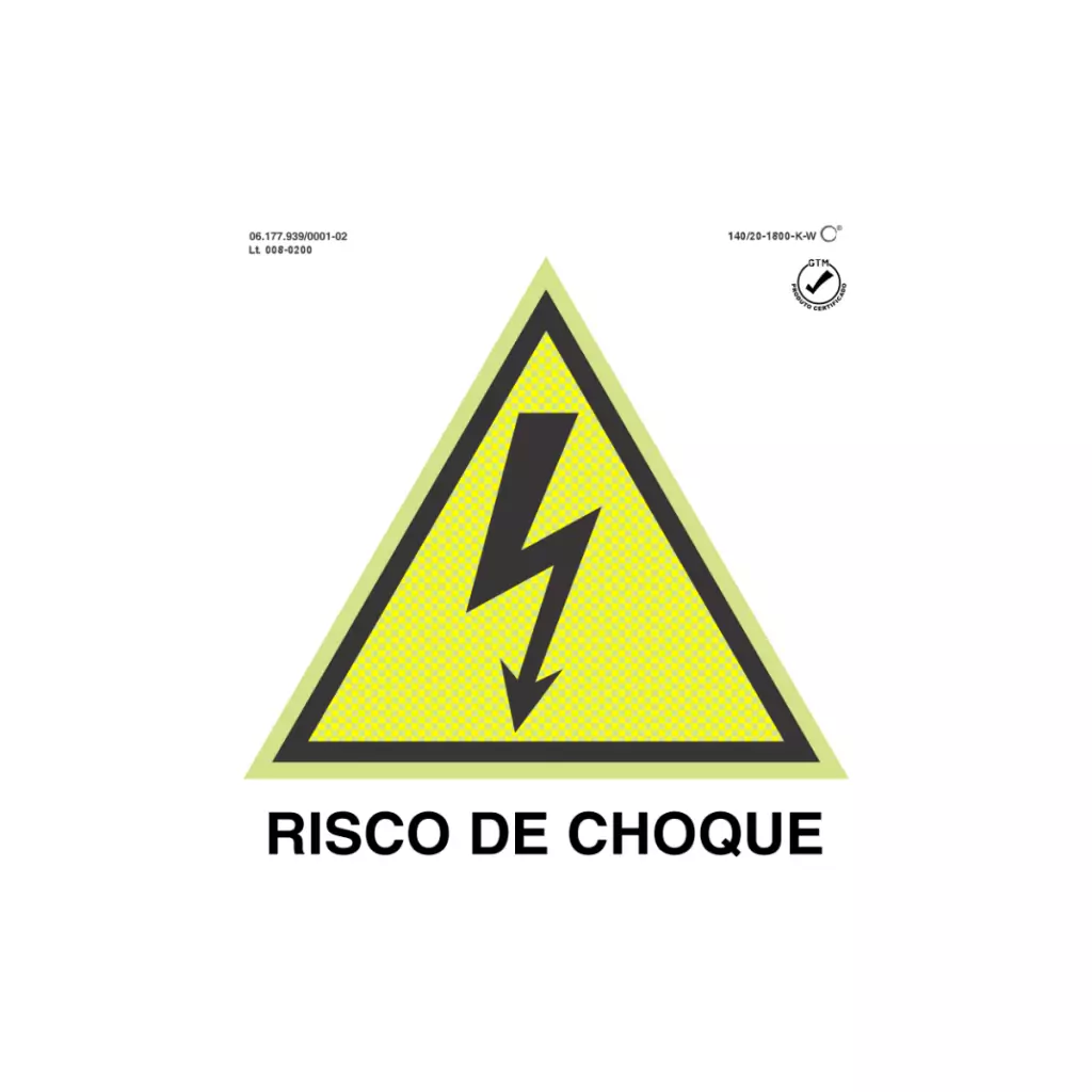 Placa de Sinalização Risco De Choque Fotoluminescente 20 x 20 cm