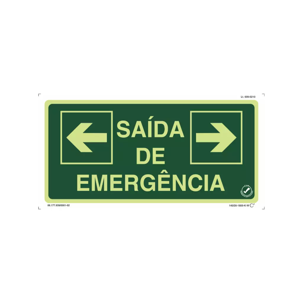 Placa de Sinalização Saída De Emergência Esquerda Direita Fotoluminescente 13 x 26 cm PVC