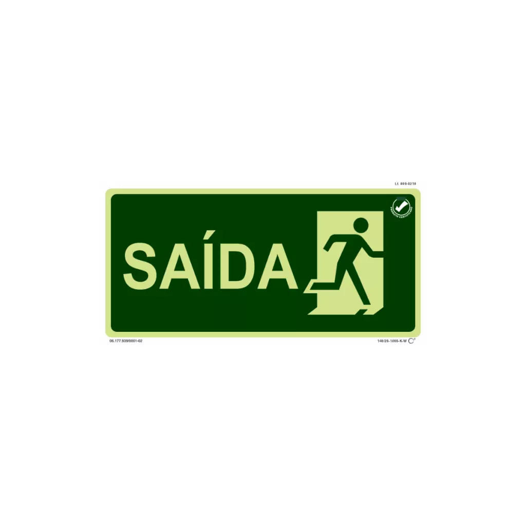 A Placa de Sinalização Saída Pictograma Fotoluminescente é essencial para garantir a segurança em ambientes diversos. Com dimensões de 13 x 26 cm, esta placa é fabricada em PVC expandido atóxico e não-radioativo, possuindo uma espessura de 1mm.