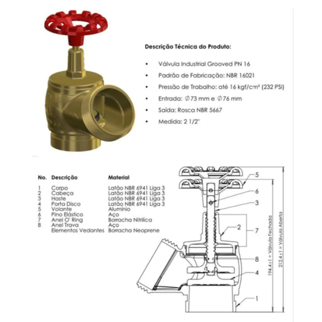 O registro de hidrante é responsável por acionar a água da tubulação no caso de incêndio, disponíveis nos modelos PN10 (predial) e PN16 (industrial). Também conhecida como válvula globo angular, o Registro para Hidrante 2 ½" é uma válvula de fecho, instalada em tubulações hidráulicas de combate a incêndio junto ao ponto de utilização, para condução de água destinada ao combate e controle de incêndios. A válvula compõe o Sistema Hidráulico Preventivo (SHP), sistema que padroniza a implantação de abrigos de incêndio em áreas com circulação significativa de pessoas, com intuito de agilizar o processo de extinção das chamas no início do incêndio. Ela fica posicionada junto ao hidrante e, por meio de seu ângulo de 45°, pode ser encaixada com rapidez e praticidade na mangueira, tornando ágil a tarefa de dissipar focos de incêndio