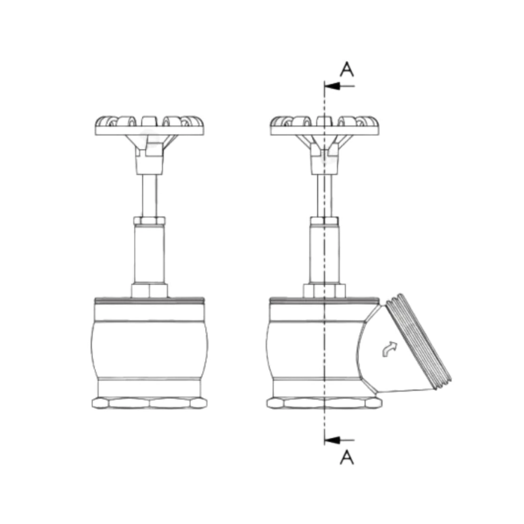 VÁLVULA GLOBO ANGULAR 45° INDUSTRIAL PARA HIDRANTE COM VOLANTE