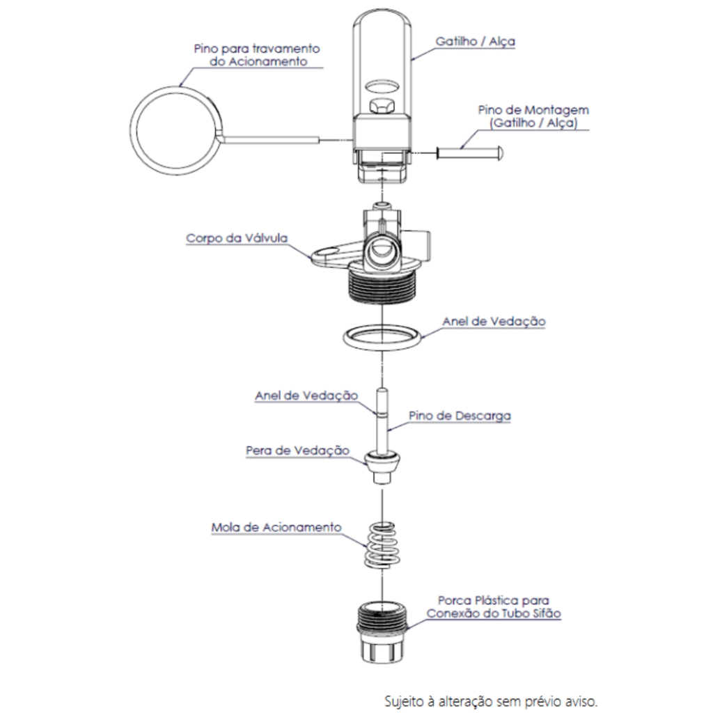 Características Técnicas - Rosca de Entrada: M30 x 1,50 (Fio Macho) - Rosca de Saída: M14 x 1,25 (Fio Fêmea) - Vedações: O’rings poliméricos para vedação eficiente - Gatilho: Pintura eletrostática na cor vermelha, facilitando a identificação em situações de emergência - Pressão de Ruptura: 7 MPa - Peso Total Aproximado: 0,280 kg